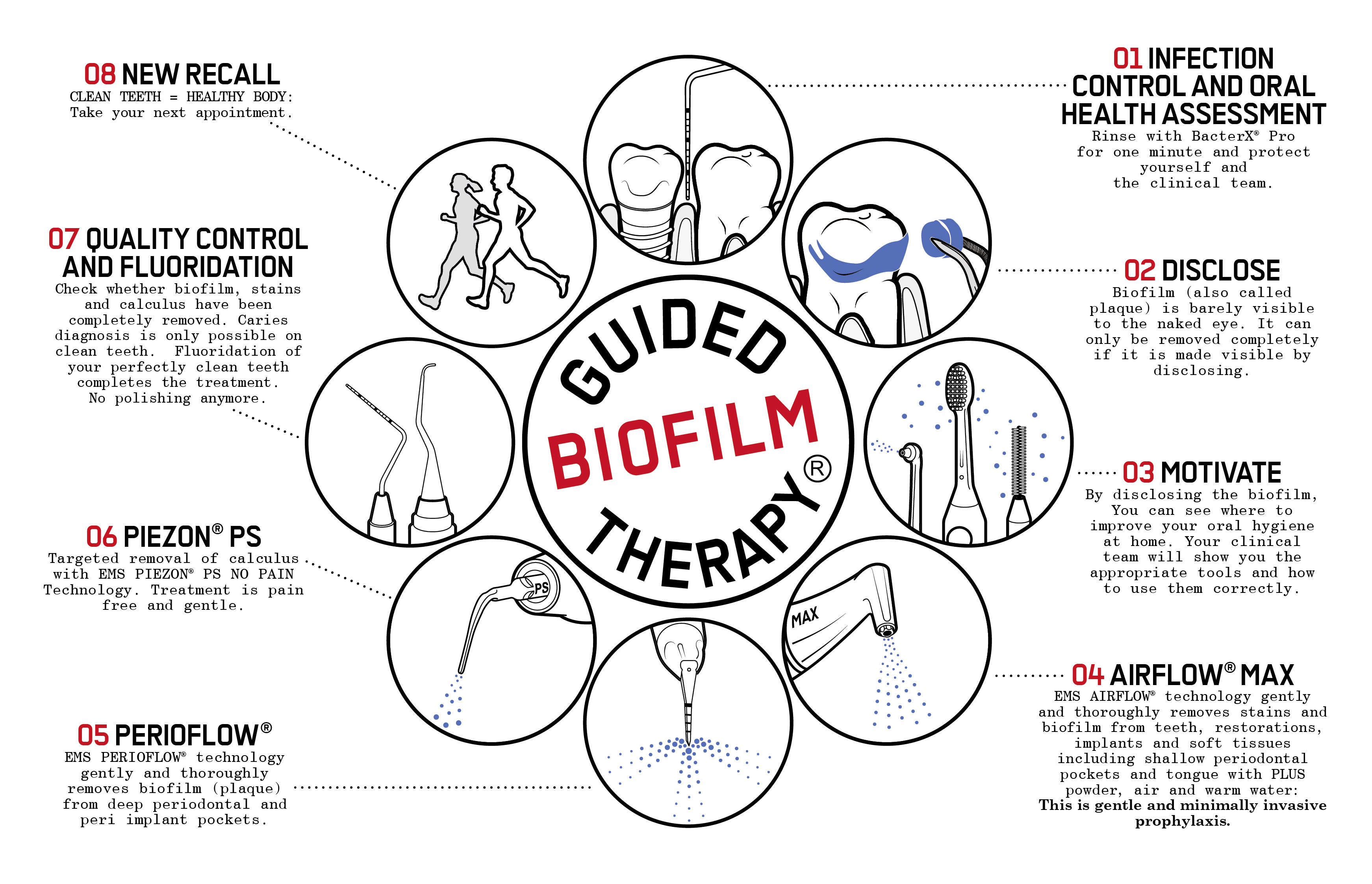 GBT é o novo padrão em prevenção e profilaxia. Ao desenvolver a Terapia Guiada por Biofilme, a EMS criou o que de melhor existe para a remoção completa do biofilme oral usando um protocolo clinicamente testado.